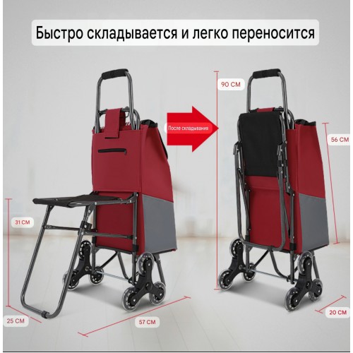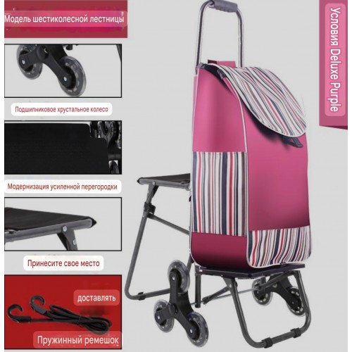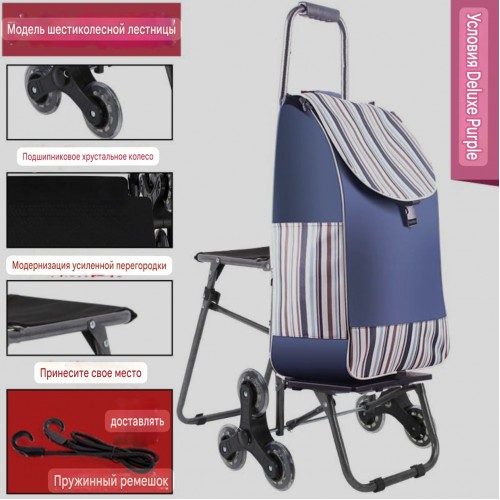 Сумка для пожилых людей со стулом и 6 колесами для подъема по лестнице