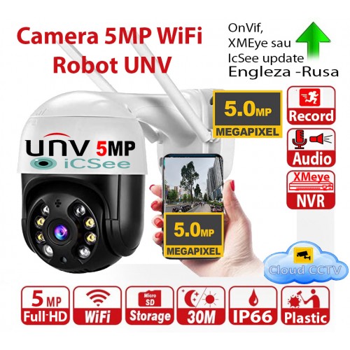 Tags: 5MP WiFi IP Camera UNV 2K Robot mic, LED, dinamic, sirena, registrator inclus