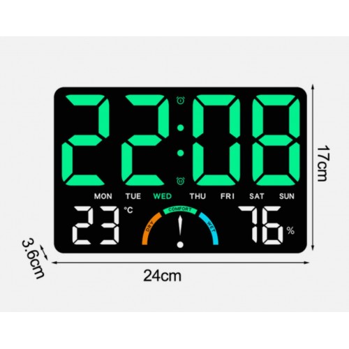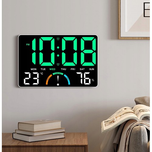 Afișajul mare oferă ora, ziua, data și temperatura camerei pe un ecran LED luminos, cu contrast ridicat.